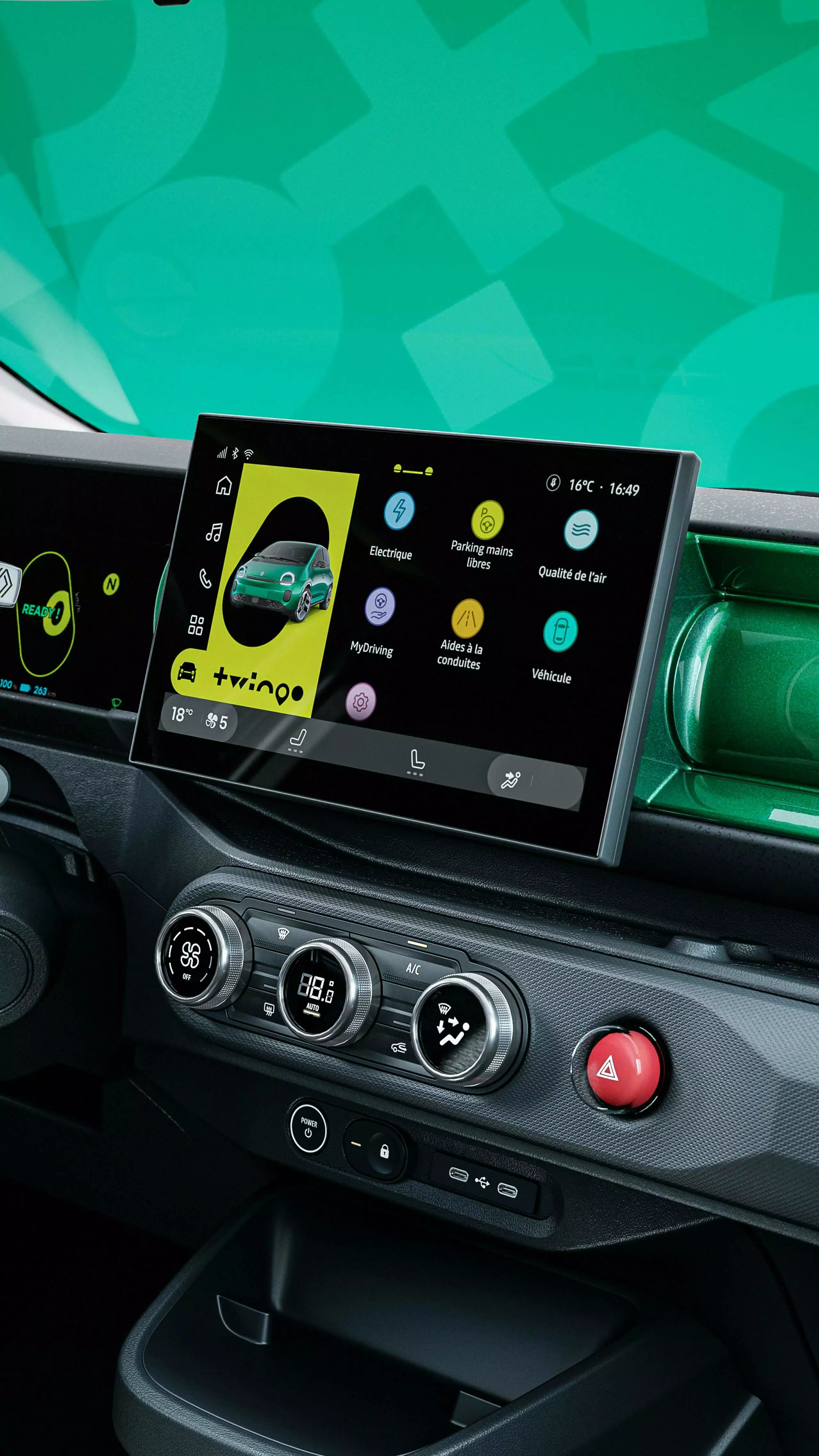 Equipado con hasta 24 sistemas avanzados de asistencia a la conducción², el Twingo E-Tech eléctrico refuerza la seguridad en cada trayecto. Entre ellos destacan el safe exit para ocupantes, el aparcamiento manos libres, la detección trasera con corrección de trayectoria y el regulador de velocidad adaptativo. Incluye también seis airbags y sensores perimetrales para facilitar las maniobras en ciudad.